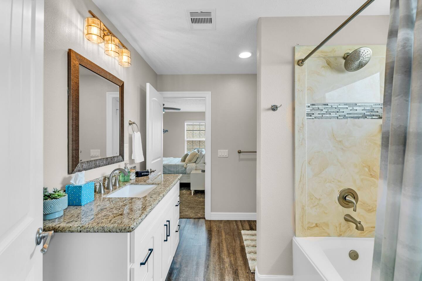 Shore Thing Oasis! 4 Bedroom, Sleeps 12, Hot Tub, Gas Grill, Tiki Bar with Outdoor TV. Short walk to beach!